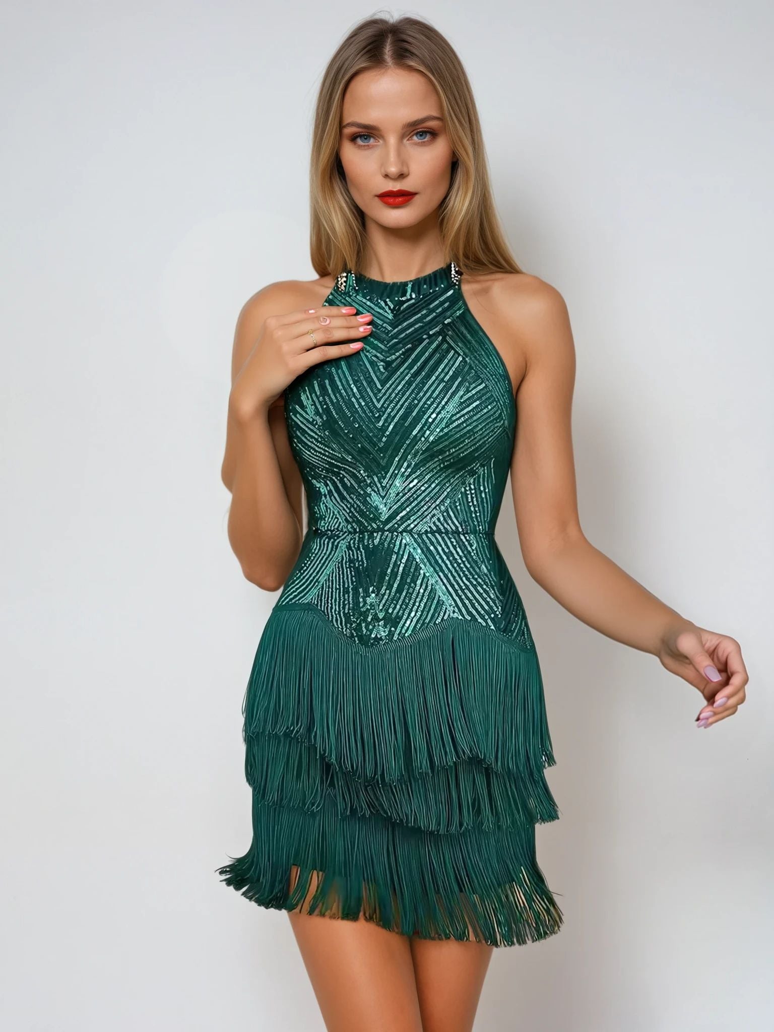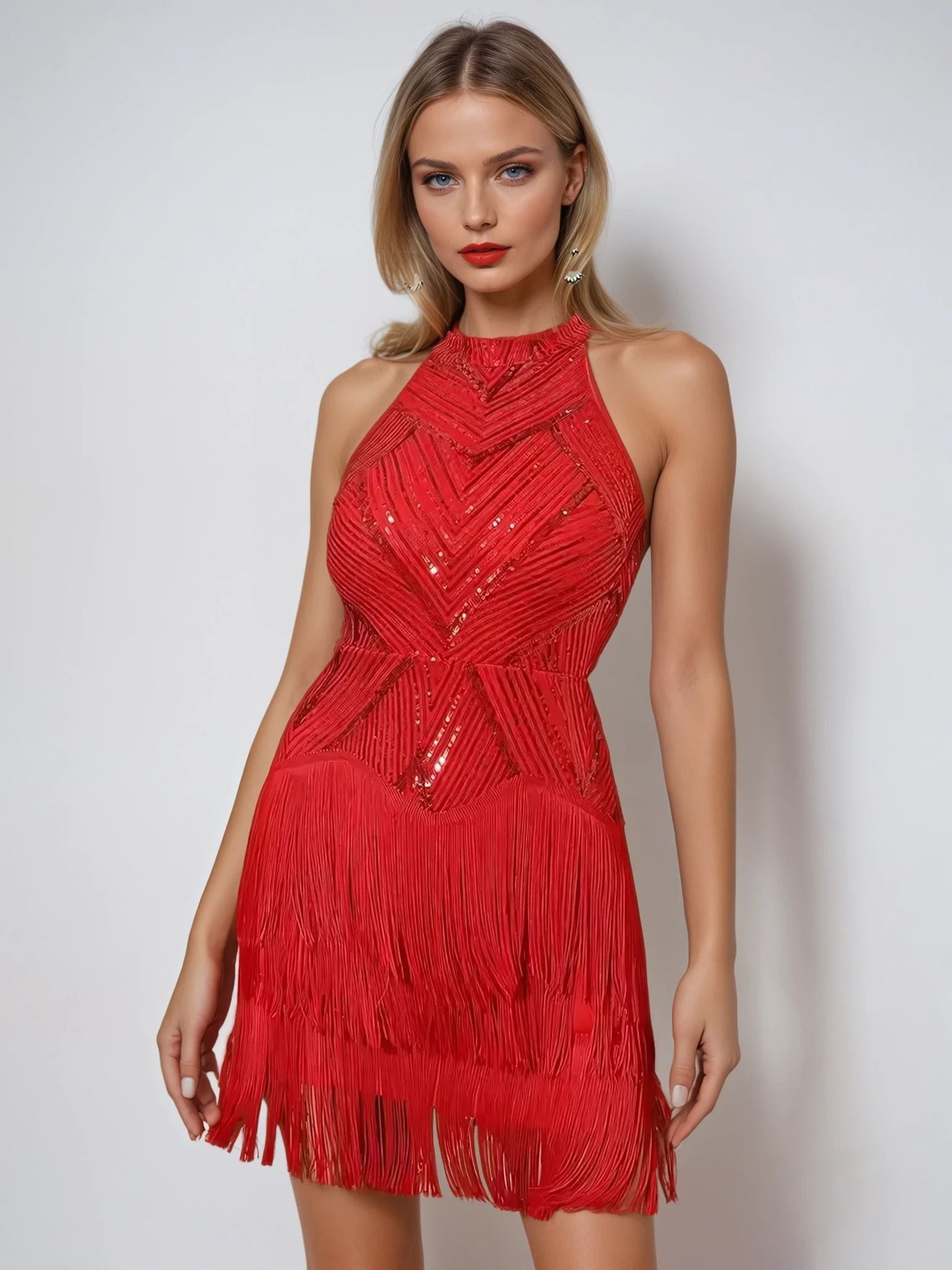 Halter Neck Sleeveless Sequin Mini Dress – Elegant Evening Party Dress for Women