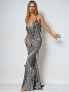 Sexy High Quality Sequin Deep V-Neck Geometric Fishtail Party Maxi Dress for Women