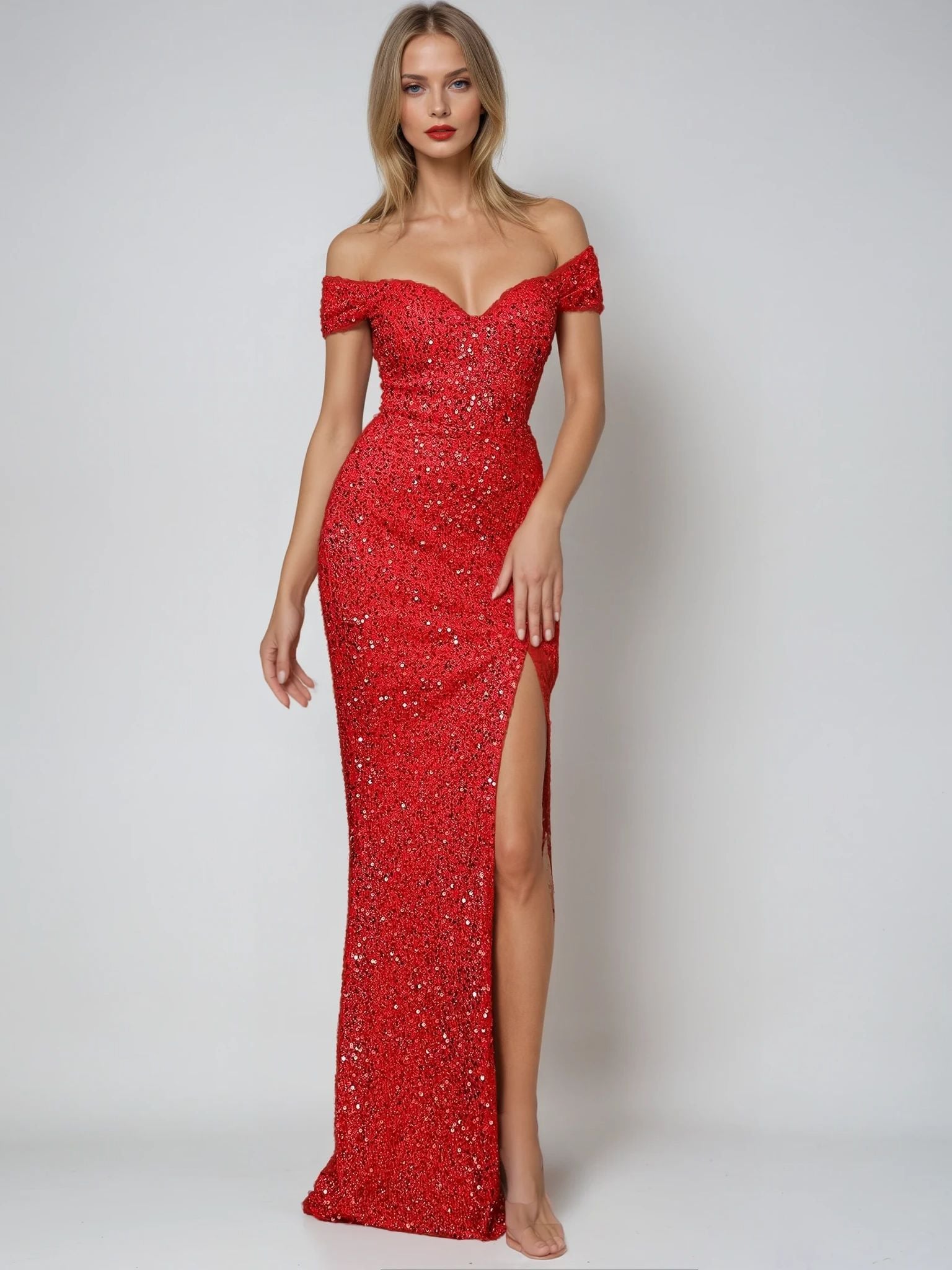 Unleash your inner diva with this sexy split thigh sequin formal gown, crafted to dazzle at evening parties, formal events or galas. Featuring a sleek maxi-length design with a daring high-slit thigh, this dress combines elegance with a touch of boldness. The shimmering sequins add glamour, while the flattering silhouette ensures you’ll shine all night long. Perfect for women looking to make a statement, this gown pairs beautifully with strappy heels and minimal accessories for a show-stopping look.