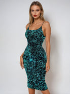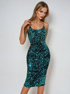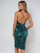 Turn heads with this sexy backless mini dress, featuring a bold V-neckline and a flattering slim-fit bodycon design. Adorned with shimmering sequins, this dress is perfect for evening parties, cocktail events or special occasions. The backless detail adds an alluring touch, while the bodycon silhouette highlights your curves for a glamorous and confident look. Pair it with stilettos and minimal accessories for a show-stopping outfit.