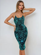 Sexy Backless V-Neck Sequin Bodycon Mini Dress for Women