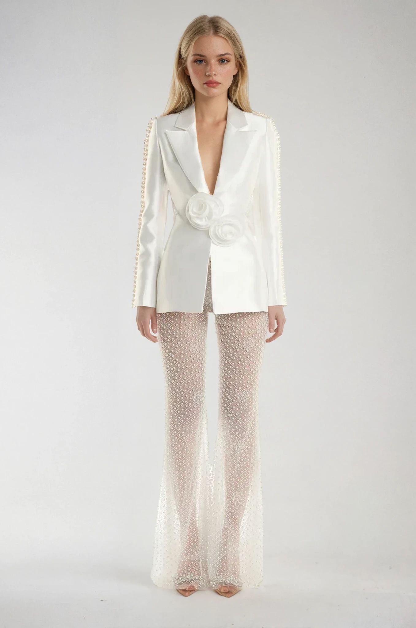 Upgrade your wardrobe with this elegant two-piece spring set, designed for women who love timeless fashion. Featuring delicate pearl embellishments, this chic outfit combines sophistication and modern style, perfect for formal events, brunch dates, or casual gatherings. The coordinated top and bottom offer a polished look that’s versatile and easy to wear. Pair it with heels or flats for a stylish ensemble that works for any occasion.