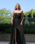 Black Sleeveless Sequin Split Maxi Evening Gown with Flowing Ribbon – Elegant Banquet Dress for Women