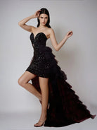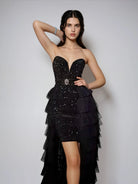 Elevate your evening look with this black strapless sequin patchwork dress, featuring a luxurious tulle mesh overlay for a touch of elegance and sophistication. Perfect for formal events, parties or special occasions. This dress combines shimmering sequins with a flowy mesh design to create a stunning silhouette. The strapless neckline enhances the allure, making it a must-have for women who love glamorous and refined fashion. Pair it with high heels and minimal jewelry for a show-stopping look.