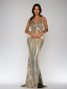 Contrast Color Sequin Mermaid Formal Gown – Elegant Evening Maxi Dress for Women