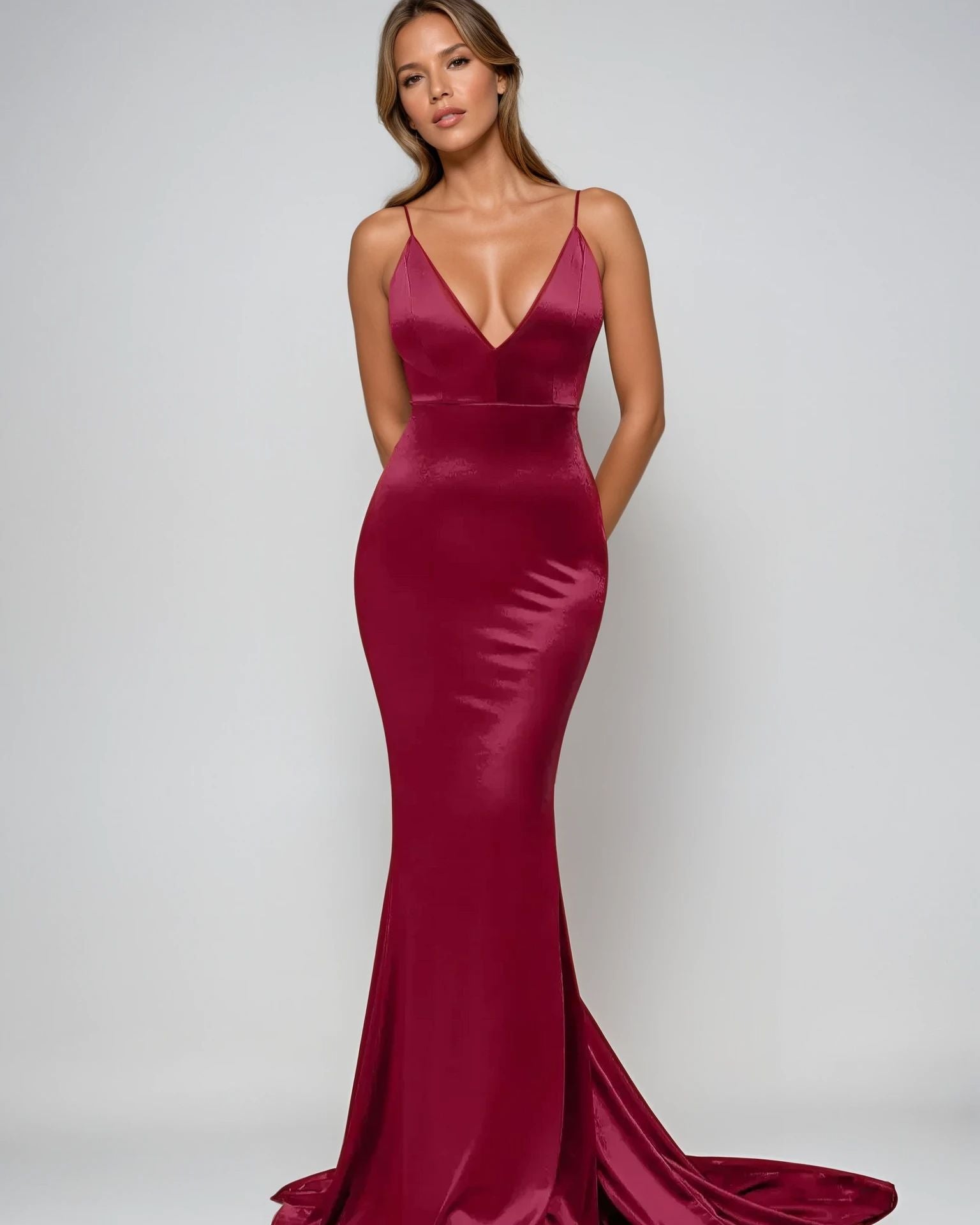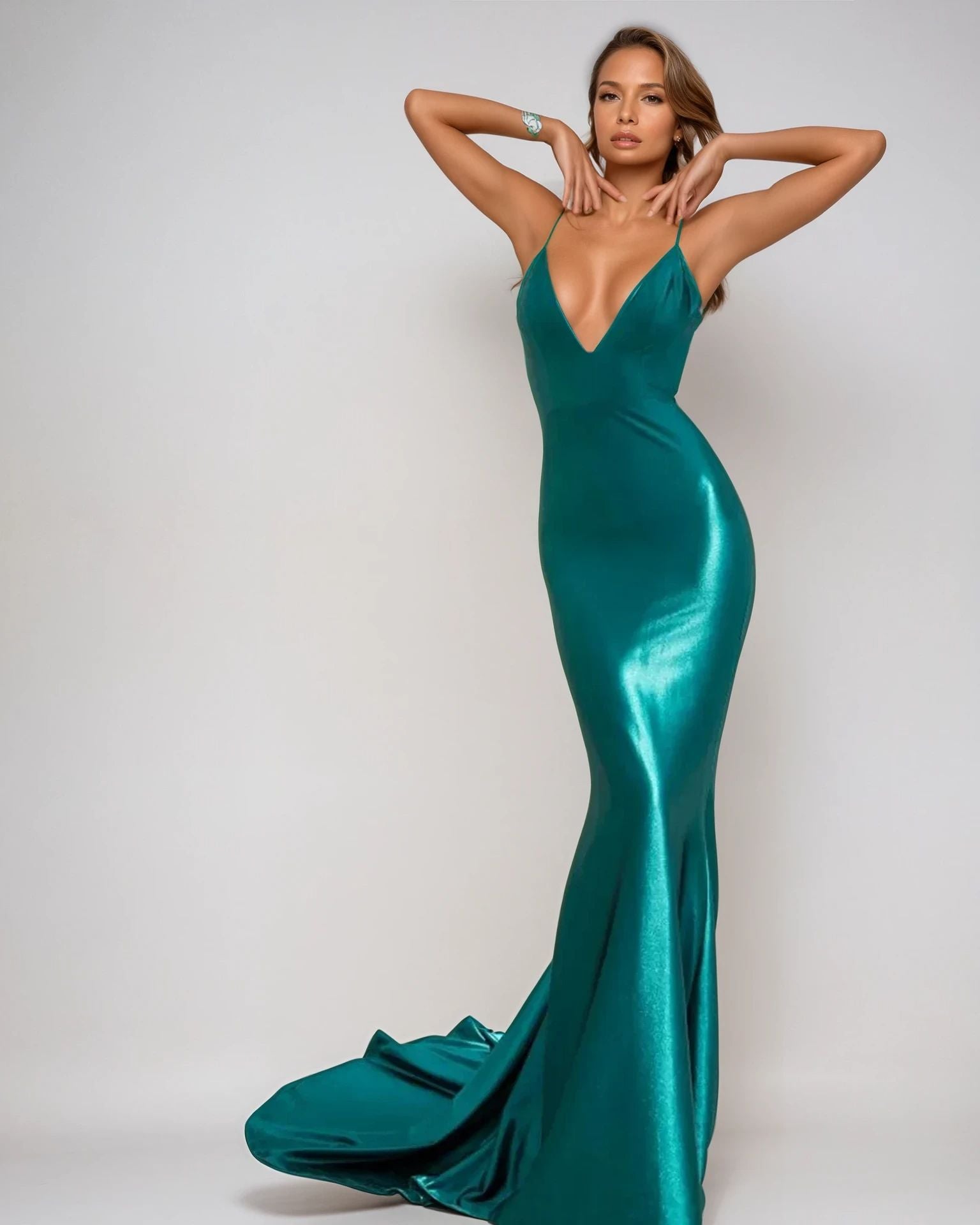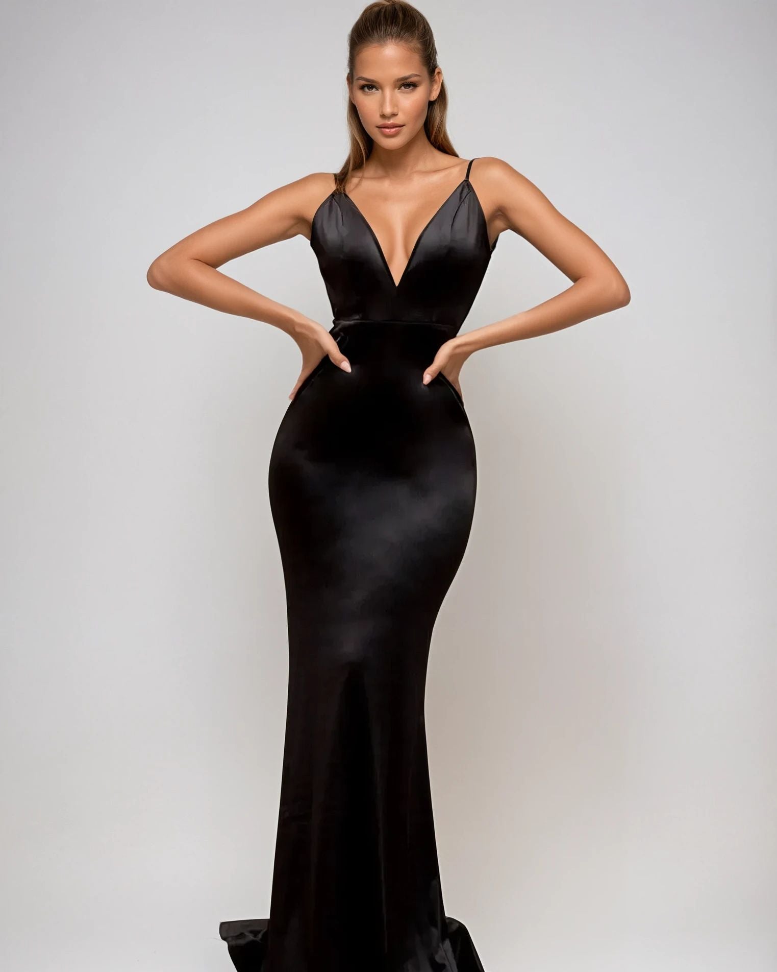 Deep V-Neck Open Back Slim Flash Maxi Dress for Women and Girls