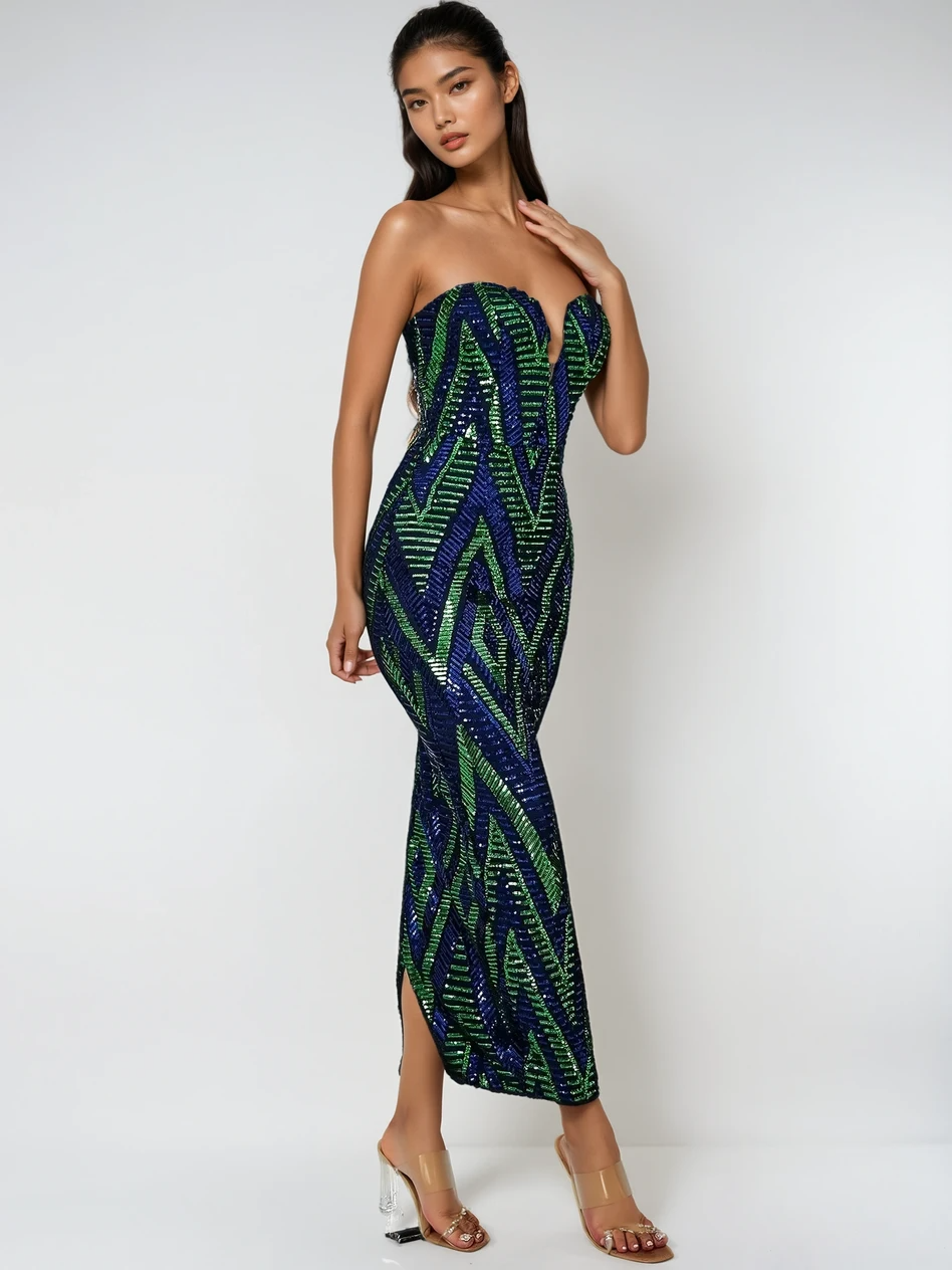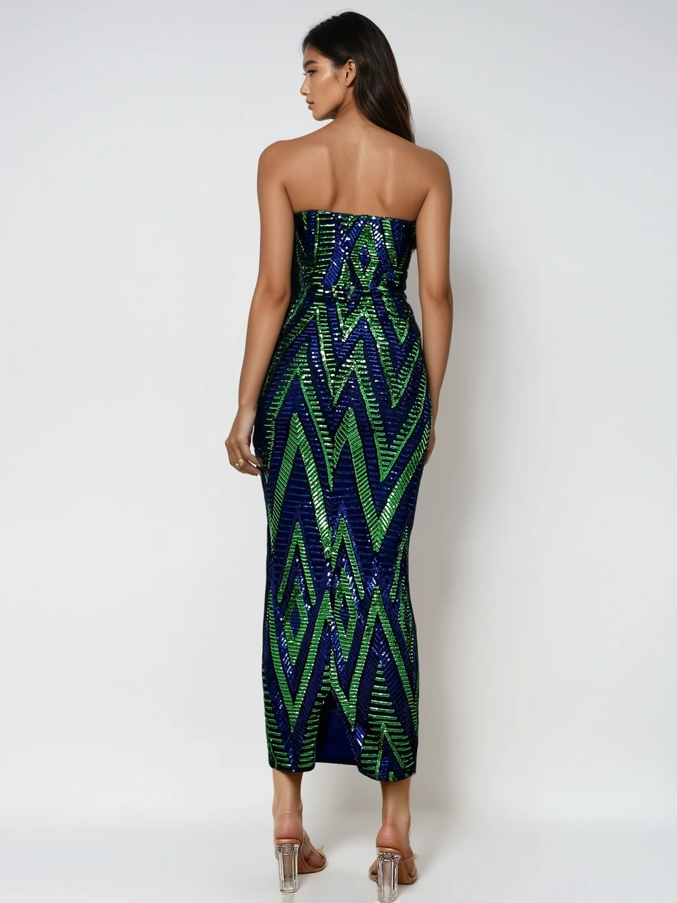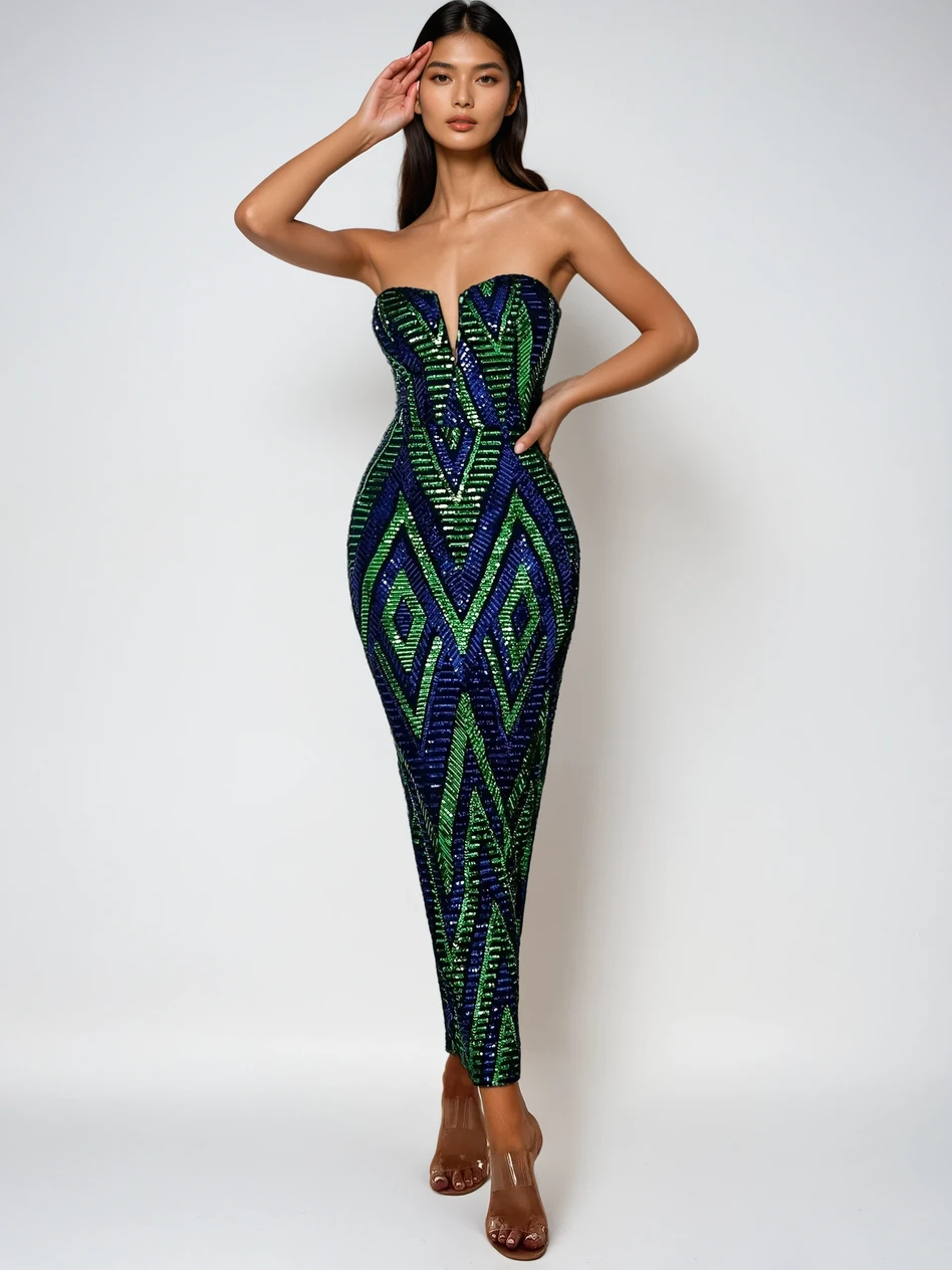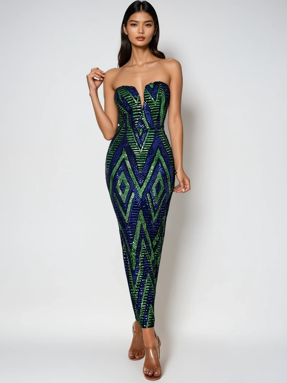 Sparkle in style with this Argyle Sequin Tube Bodycon Dress—the perfect choice for birthdays, night outs, and glamorous evening events. Designed with a striking argyle sequin pattern and a sleek strapless tube silhouette, this dress beautifully contours your curves for a bold and confident look. Chic, stylish, and eye-catching, it’s your go-to party dress when you want to shine and stand out effortlessly.