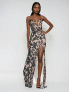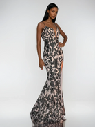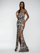 Black V-Neck Sequin Backless Slit Maxi Evening Maxi Dress for Women
