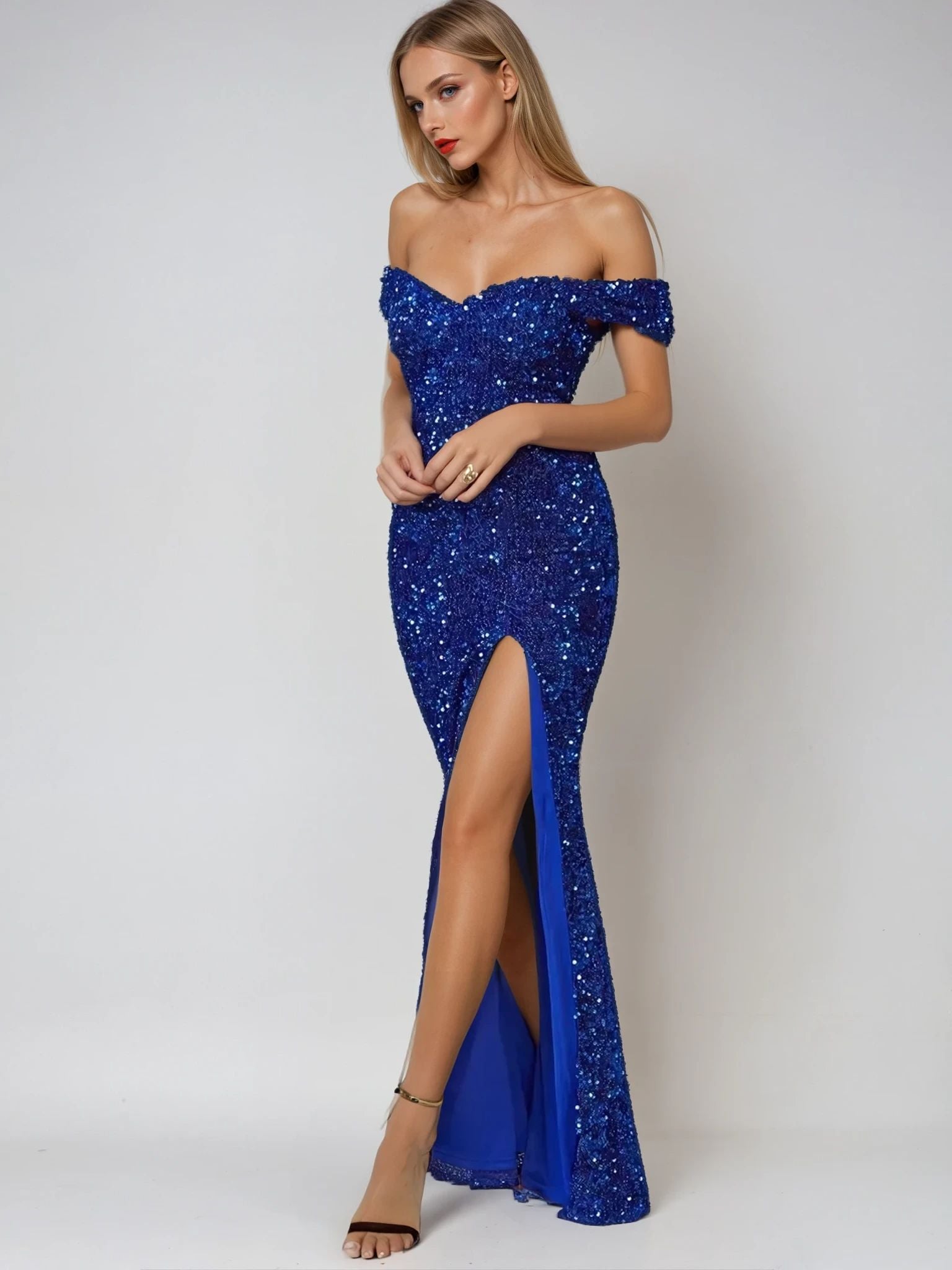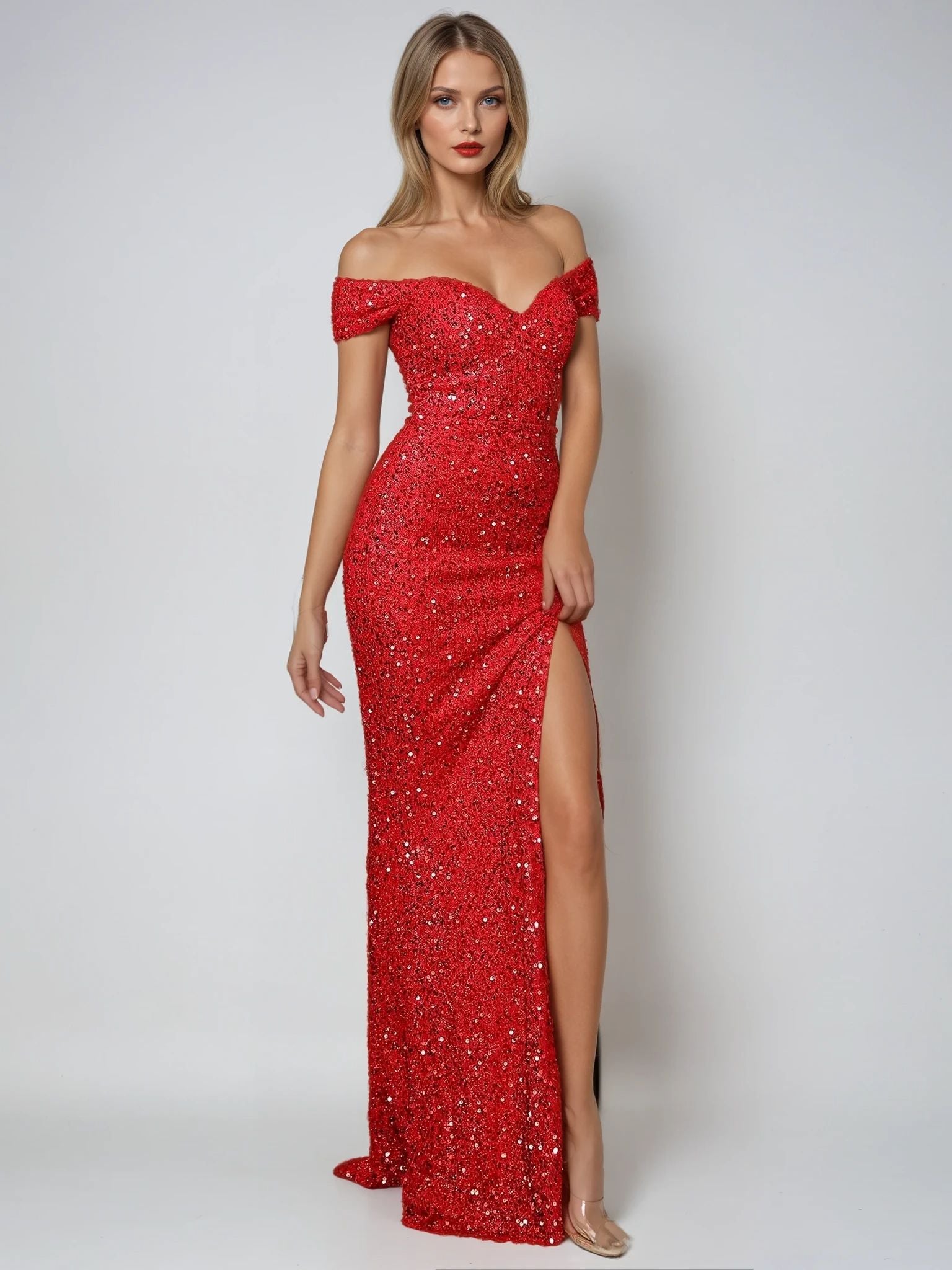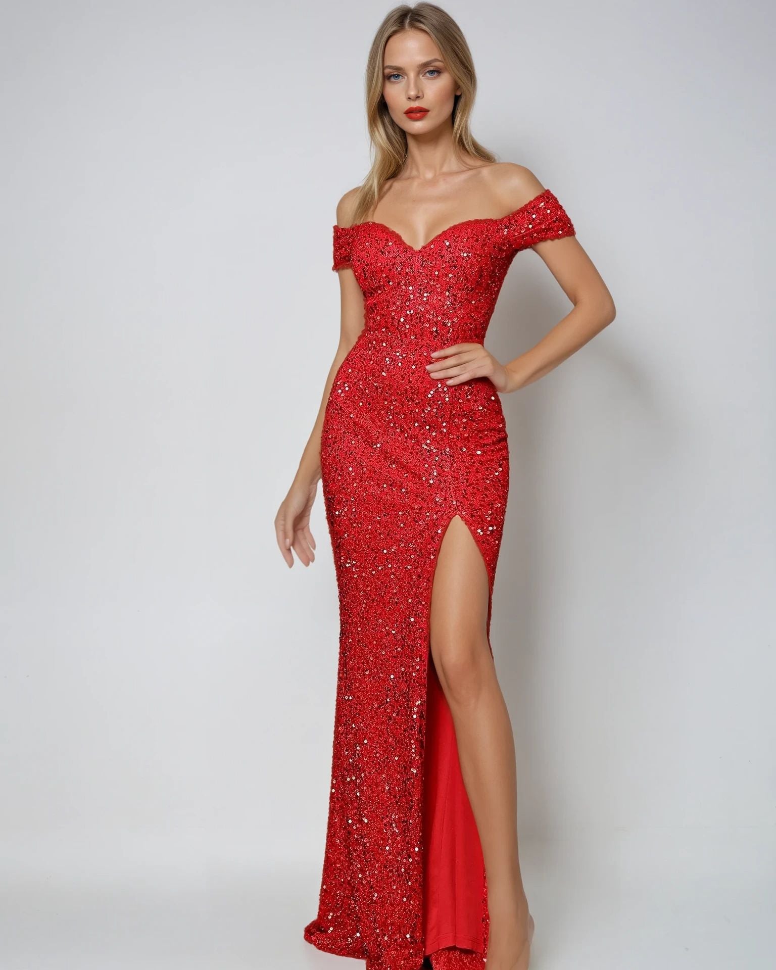 Unleash your inner diva with this sexy split thigh sequin formal gown, crafted to dazzle at evening parties, formal events or galas. Featuring a sleek maxi-length design with a daring high-slit thigh, this dress combines elegance with a touch of boldness. The shimmering sequins add glamour, while the flattering silhouette ensures you’ll shine all night long. Perfect for women looking to make a statement, this gown pairs beautifully with strappy heels and minimal accessories for a show-stopping look.