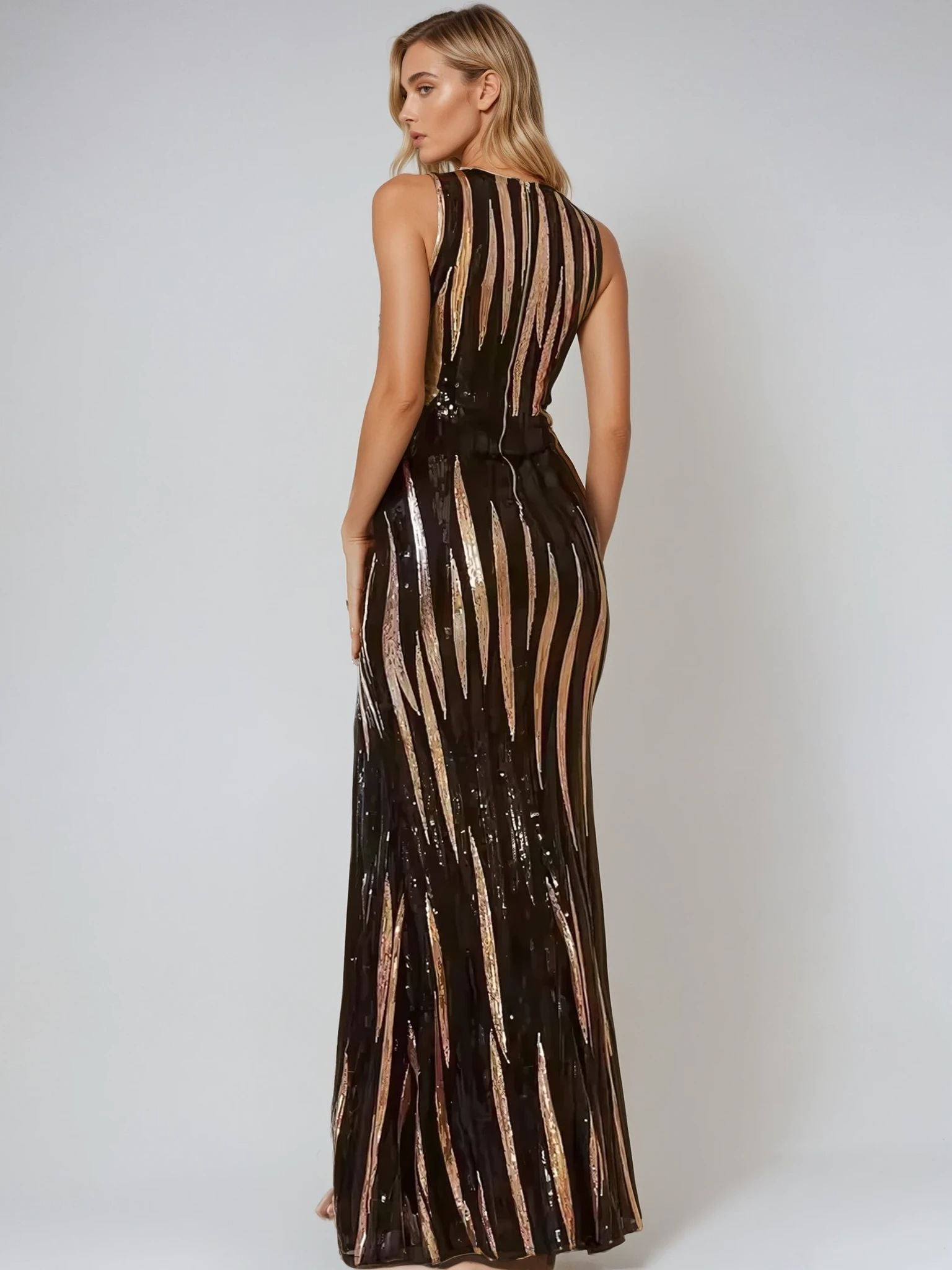 Sexy Split Thigh Sequin Evening Formal Summer Dress for Women